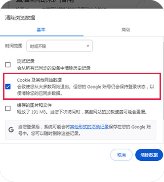 如果仍无法解决问题,建议您接着清除浏览器的Cookie。